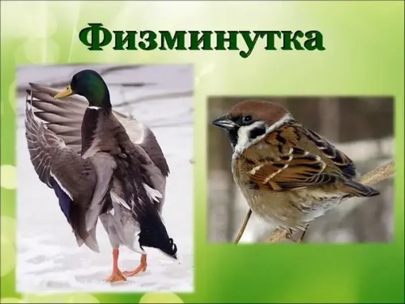 Учитель: Когда я называю зимующих птиц, вы летаете около своего места, а когда перелетных - садитесь на корточки. Будьте внимательны.