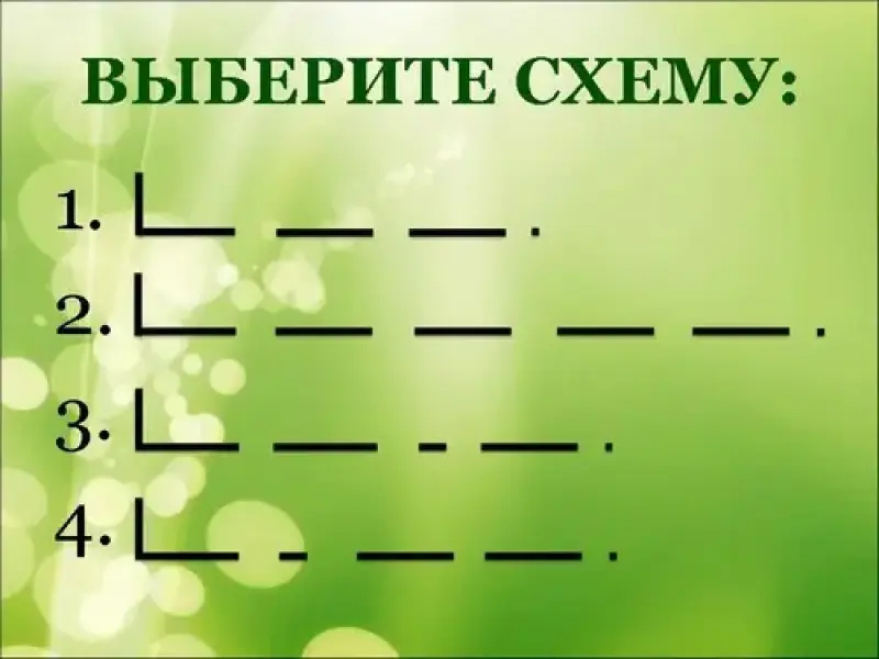 - Выберите на доске схему, которая подходит к этому предложению. Покажите карточку с номером предложения.