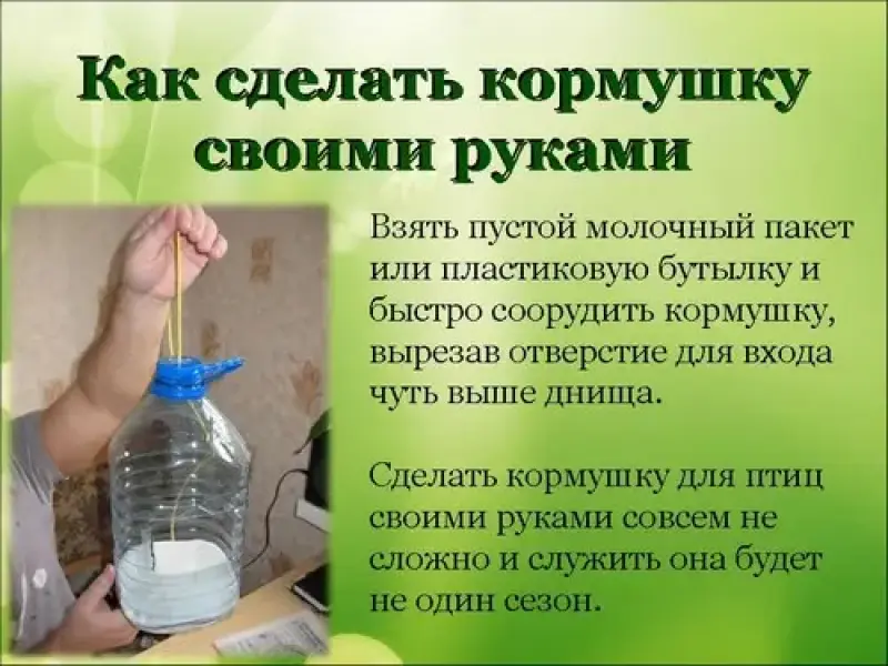 - Как можно сделать кормушку для птиц? (Рассказ учащихся, дополнение учителя.)