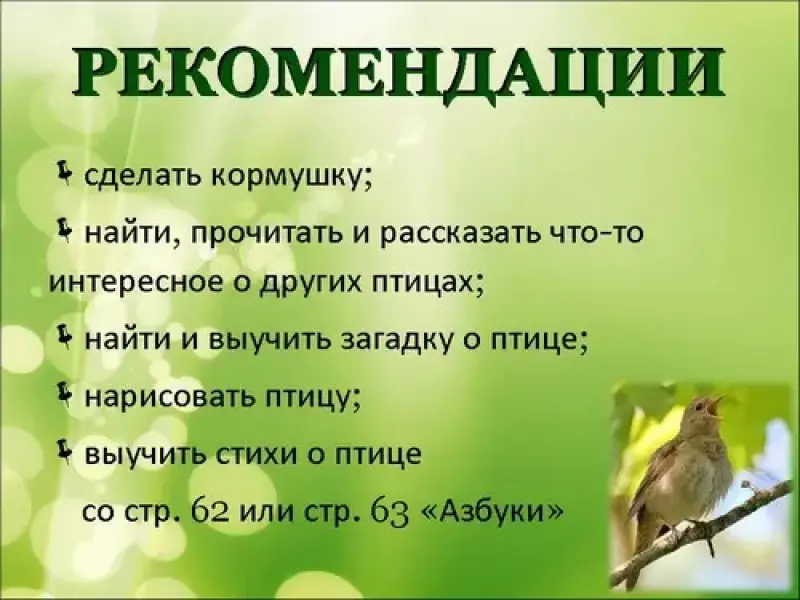 - выучить стихи о птице со стр. 62 или стр. 63 "Азбуки"