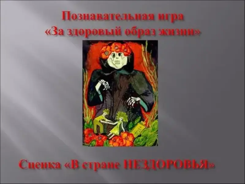 Автор - С давних пор злые чародеи Наркотик, Алкоголь и Никотин пытаются покорить людей, сделав их своими рабами. Началось это давным-давно. Как-то раз в стране Нездоровье, в его столице, собрались все злые волшебницы и феи.