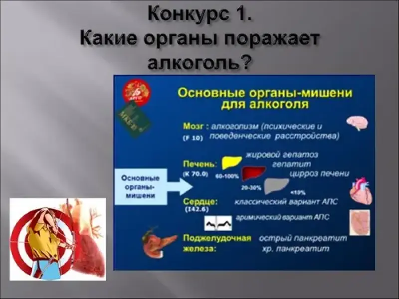 Ведущий - Команды справились с заданием. Слово представляется представителю первой команды. Он(а) расскажет нам о том, какое воздействие на организм человека оказывает алкоголь (слайд 3).