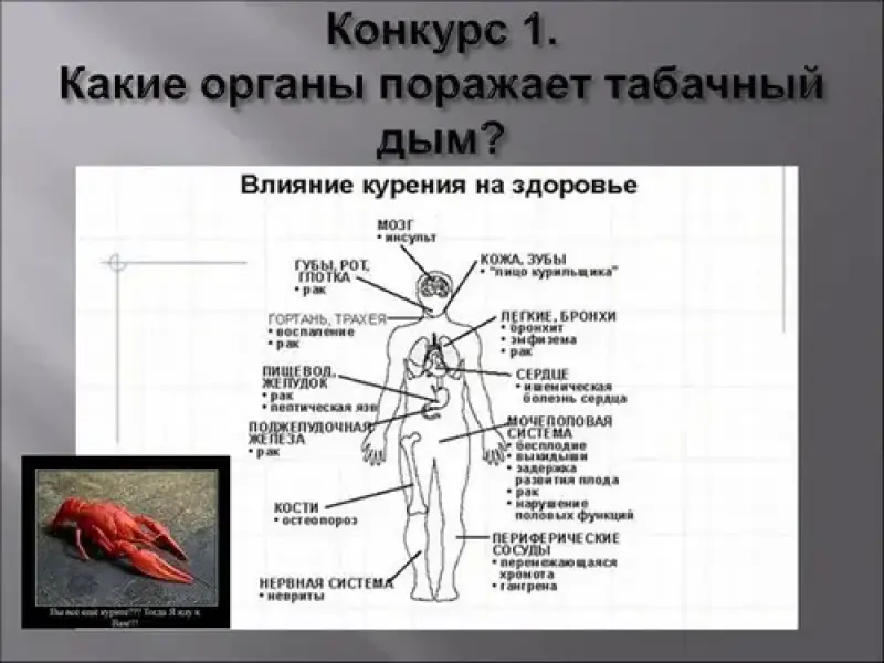 | Влияние алкоголя на организм | Влияние табака на организм |