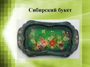 - Тема урока "Сибирский букет", а задачи урока: познакомиться с особенностями техники выполнения росписи и научиться рисовать элементы Кемеровской росписи в свободной кистевой манере мастеров.
