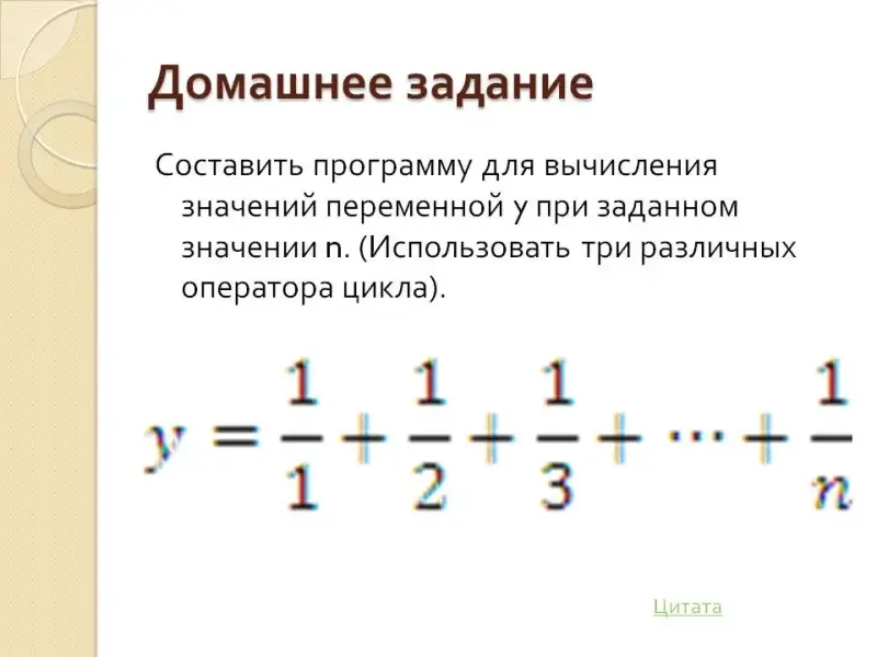 - Прибавляем очередное слагаемое к ранее полученной сумме.