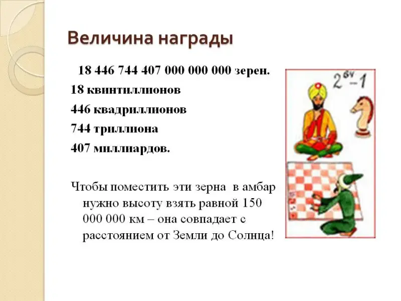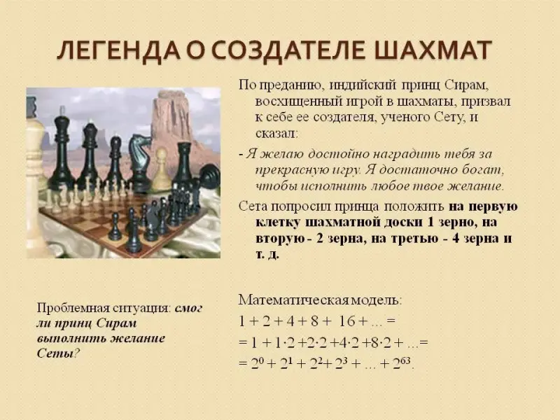 1. Вспомним «легенду о создателе шахмат»: (Слайд 3)