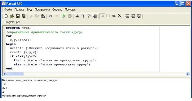Задание: написать программу, определяющую, принадлежит ли точка А(х,у) кругу с центром в начале координат и радиусом r.