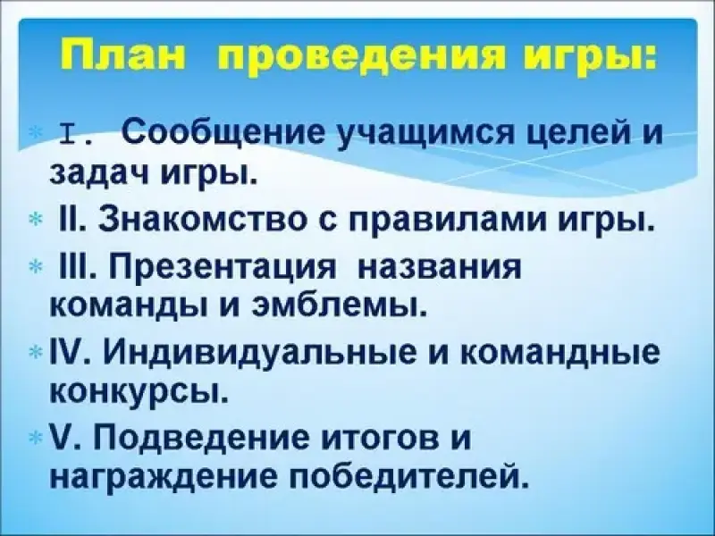Команды формируются заранее. Название командам и эмблемы для команд заготавливает учитель. Учащиеся с помощью жеребьевки делятся на команды и выбирают название командам. Например: "Ополченцы", "Гардемарины".