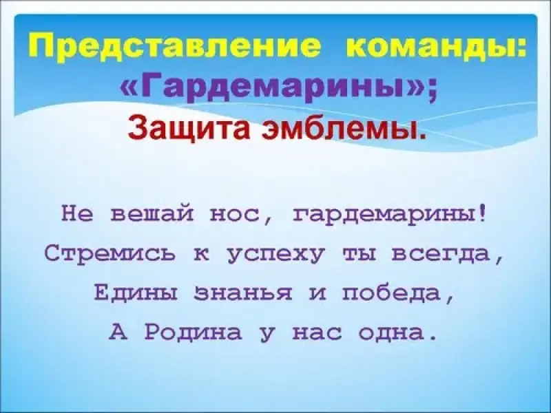 Под звуки песни "Гардемарины, вперёд! Не вешай нос" появляются участники команд.