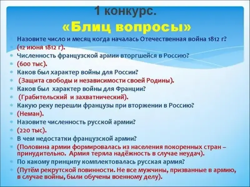 - Какого числа и месяца началась Отечественная война 1812 г? (12 июня 1812 г).