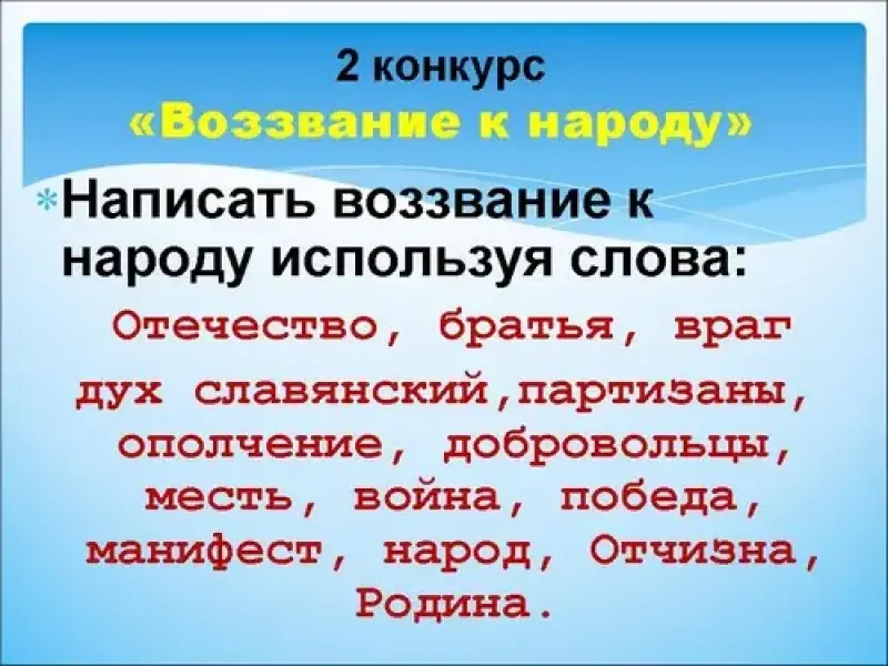 2 конкурс. "Воззвание к народу". (Сл 9)