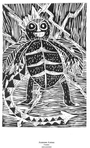Прием гравирования сухой иглой может быть с успехом применен в школе, поскольку здесь не нужно иметь дело с ядовитой азотной кислотой. Для этого необходимо обзавестись небольшим печатным станком (или использовать валики для отжима белья стиральной машины). Что касается электроплитки и типографской краски, то все это нетрудно достать при желании. Для чистки пластины после печати можно использовать обычный скипидар.