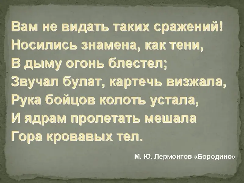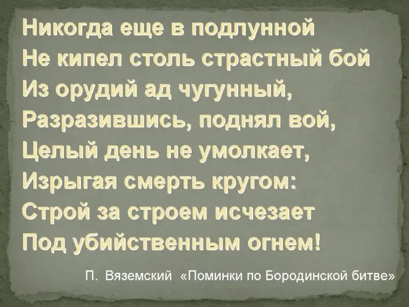 (слайд 5) А это строки из стихотворения «Поминки по Бородинской битве» поэта П. Вяземского: