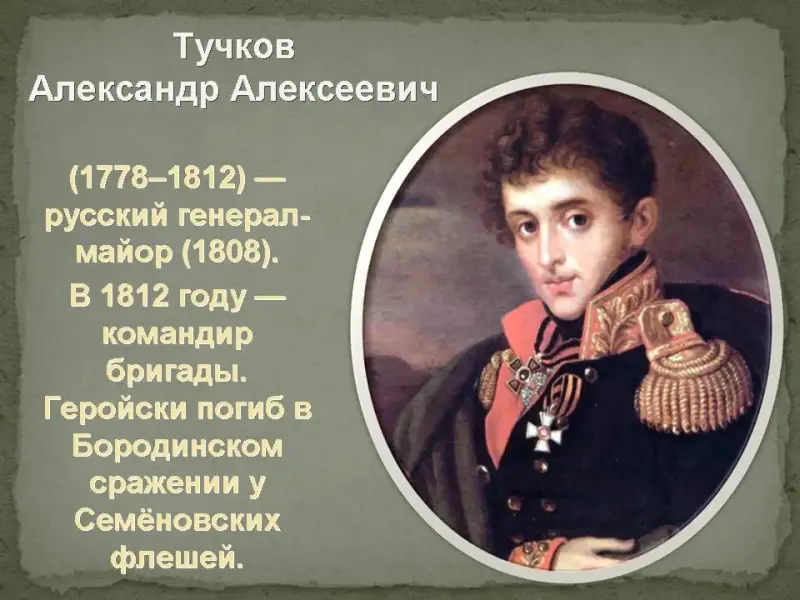 (слайды 12, 13) М. Тучкова на свои деньги на месте гибели мужа построила маленькую церковь Спаса Нерукотворного, ставшую первым архитектурным памятником Бородинского поля. Этой церкви была подарена полковая икона, в которой служил Тучков.