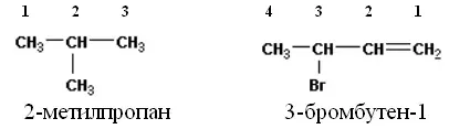 - Пронумеровать, начиная с того края, к которому ближе радикал или кратная связь.
