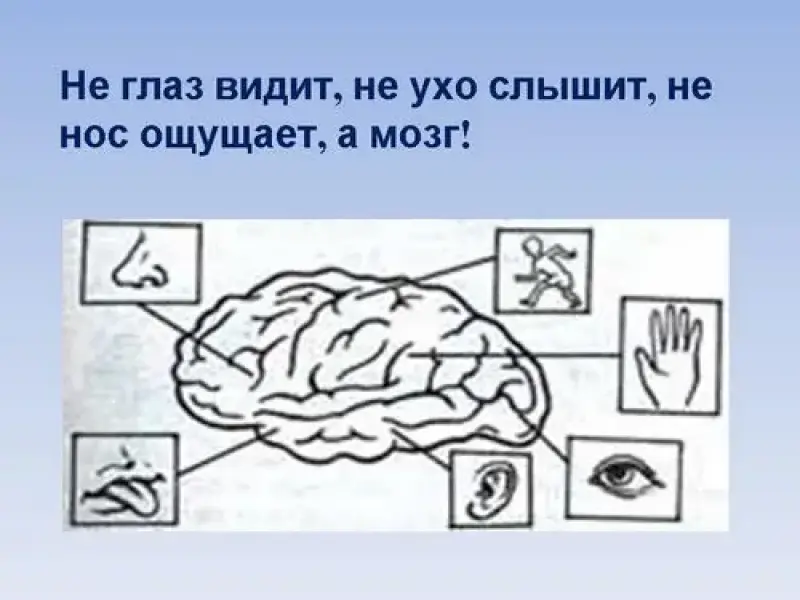 - О каких органах мы говорили? Говорят: не глаз видит, не ухо слышит, не нос ощущает, а мозг. Как это понять? (Всеми органами руководит головной мозг.)