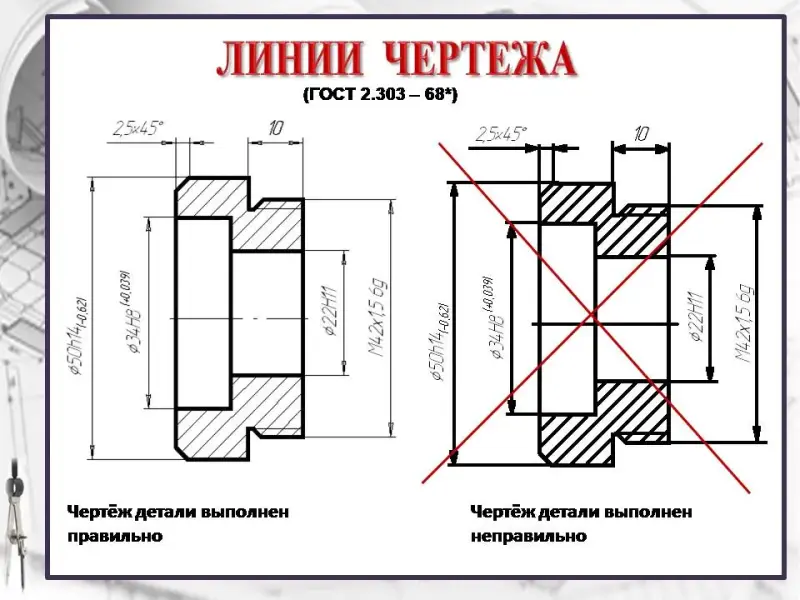 - научить применять согласно стандартам ЕСКД линии чертежа, которые имеют разное назначение и применение;