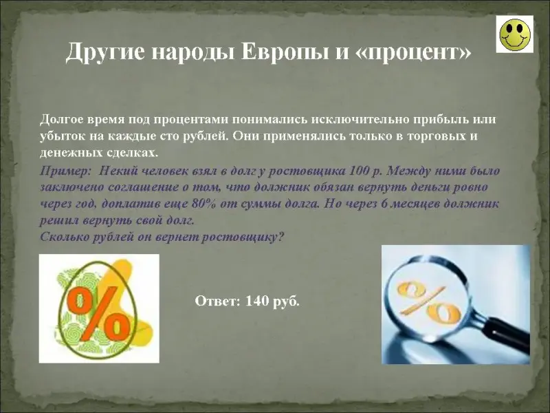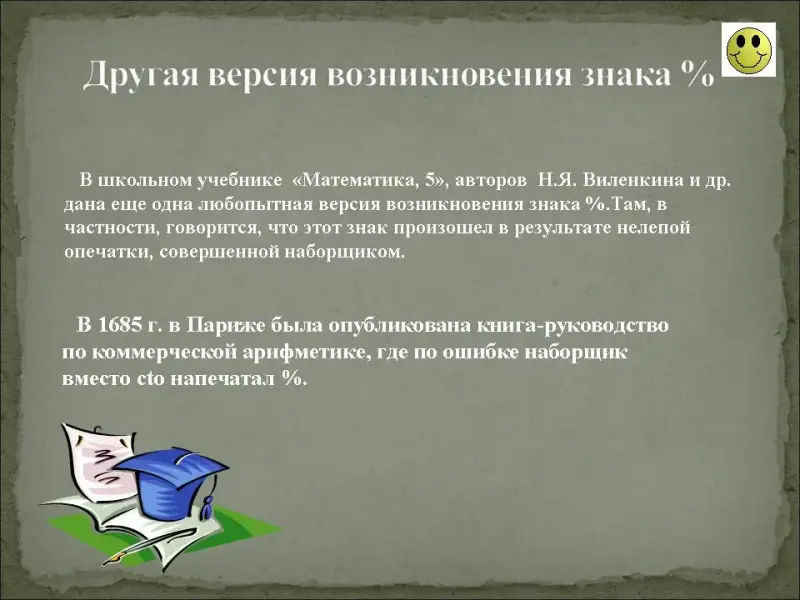 Историческая справка о проценте: (презентация по гиперссылке «Нажми»), читает ученик.[2,3]