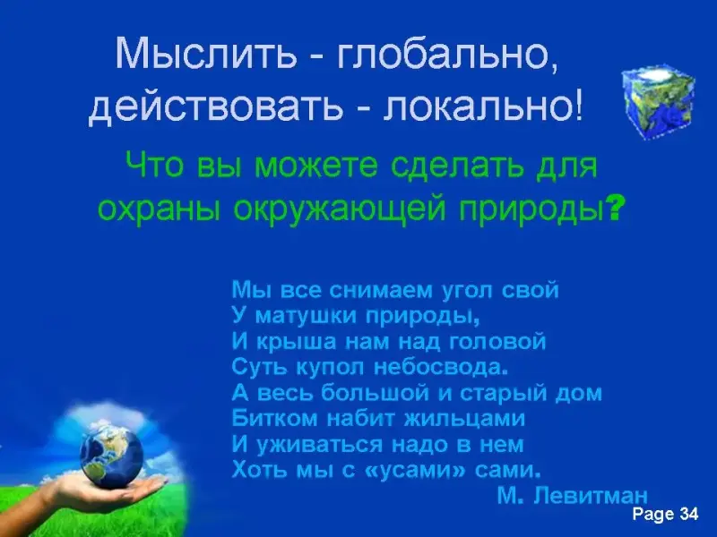 Слайд 34. Мыслить - глобально, действовать - локально!