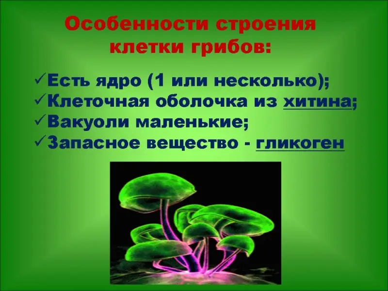 - отсутствие в клетке пластид и фотосинтезирующих пигментов,