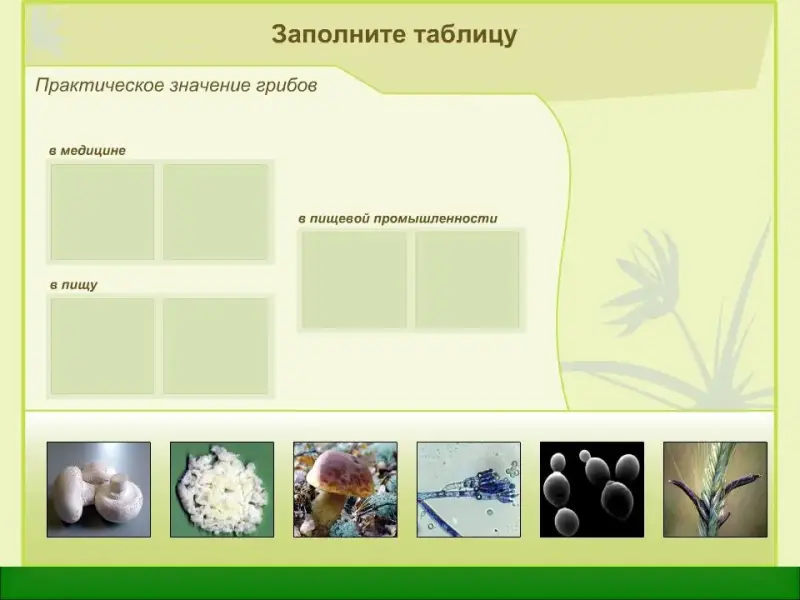 Учитель: Грибы известны людям давно, их употребляли в пищу еще в глубокой древности. И на Руси грибы были не только на столе крестьянина, подавались они и на царский стол. А что же такое гриб? (выслушивает версии)