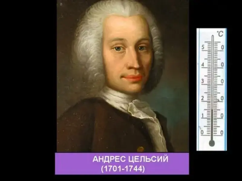 Андерс Цельсий - (1701-1744), шведский астроном и физик. Родился 27 ноября 1701 в Упсале. Окончил Упсальский университет и с 1730 до конца жизни был профессором этого университета. При его участии была организована Упсальская обсерватория, директором которой он стал в 1740. В 1733 Цельсий обнародовал данные наблюдений северного сияния, полученных им самим и другими астрономами в период с 1716 по 1732. В 1763 он принимал участие в экспедиции, целью которой была проверка гипотезы И.Ньютона о том, что Земля сплющена у полюсов. В 1742 опубликовал работу с описанием стоградусной шкалы термометра, в которой температура кипения воды при нормальном атмосферном давлении была принята за 0°, а температура таяния льда - за 100°. Позже шведский биолог К.Линней "перевернул" эту шкалу, приняв за 0° температуру таяния льда. Этой шкалой мы пользуемся до сих пор, называя ее шкалой Цельсия. В 1948 она была принята как международная.