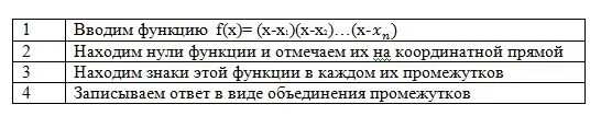 Алгоритм решения неравенств методом интервалов высвечивается на интерактивной доске: