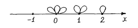 Отметим на числовой прямой критические точки, учитывая их кратность, - на каждую дополнительную скобку с данным критическим значением рисуем дополнительный «лепесток». Так, на рис.7 у точки х=3 появится один «лепесток», так как (x-3)?=(x-3)(x-3).