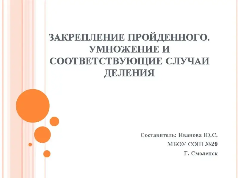 Урок математики по теме "Закрепление пройденного. Умножение и соответствующие случаи деления"