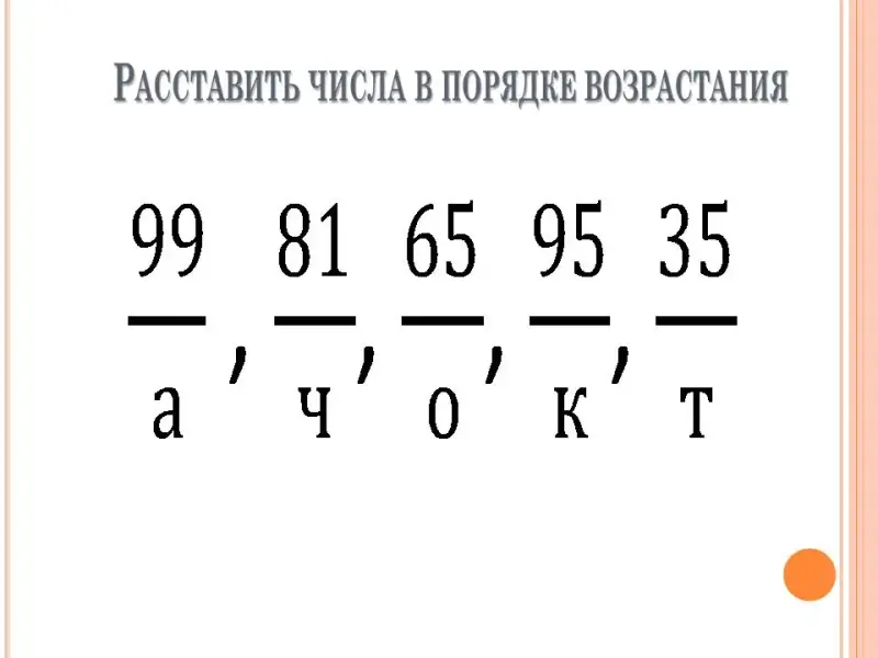 - Хитрая наша гостья. Не просто разгадать её имя. Нам нужно расставить числа в порядке возрастания, т.е. как, кто скажет?
