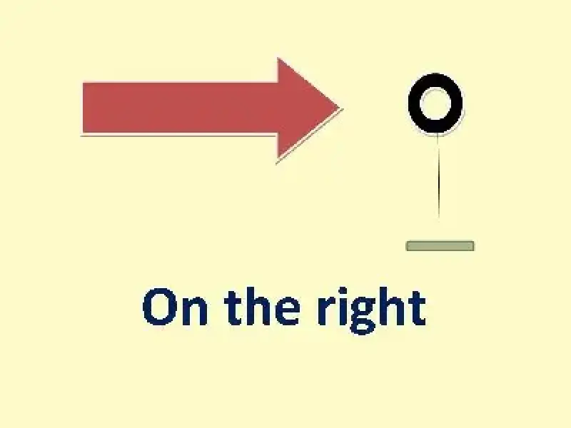 - on the right - справа (to the right - направо)