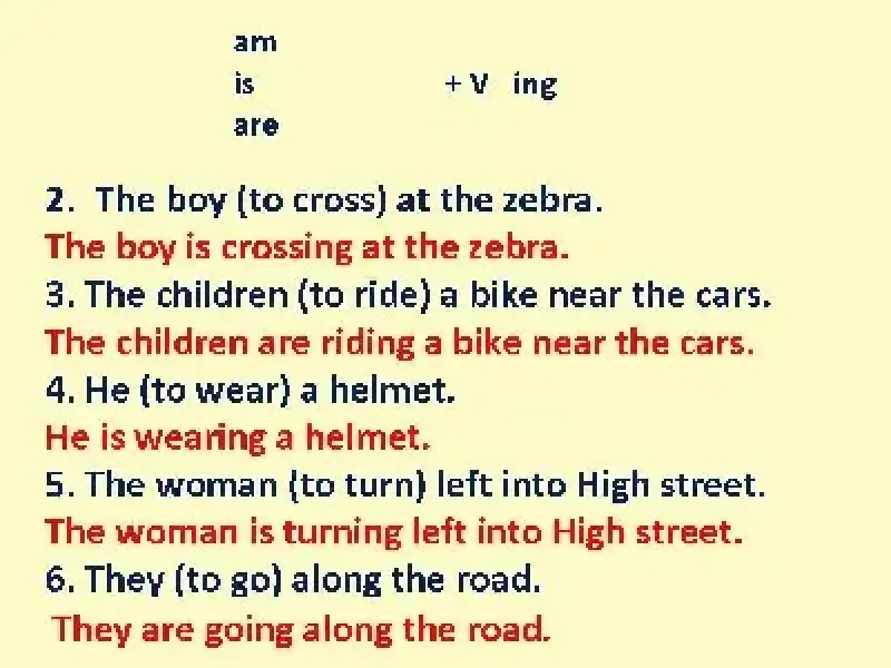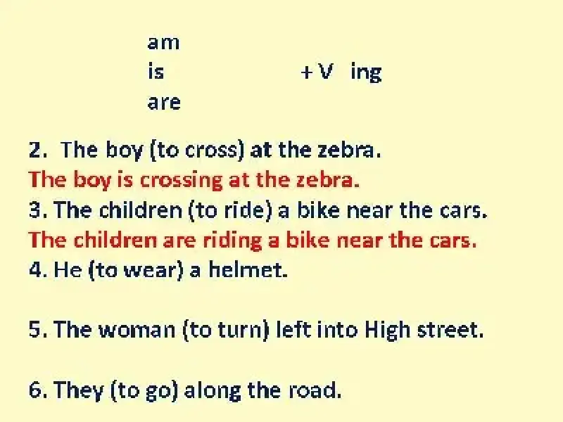 3) The children (to ride) a bike near the cars.