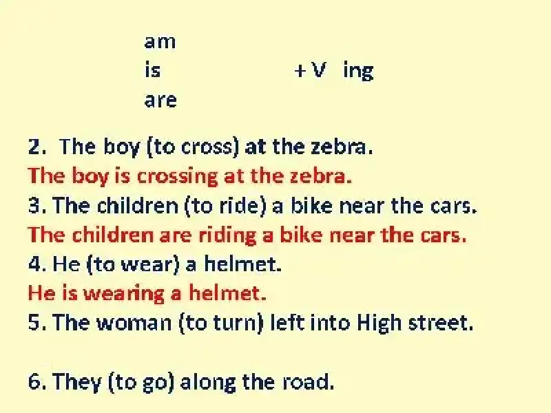Complete some sentences, using the Present Continuous Tense.