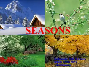 2. После фонетической зарядки послушать с учащимися стихотворение о временах года. (Ex.1 p.61. Listen and learn.) Слайд 3 Дети слушают стихотворение и повторяют за диктором, затем предложить им прочитать его по строчкам. Сильные учащиеся могут рассказать его по памяти. Предложить учащимся перевести стихотворение, а затем предложить им прочитать свой вариант перевода. Слайд 4