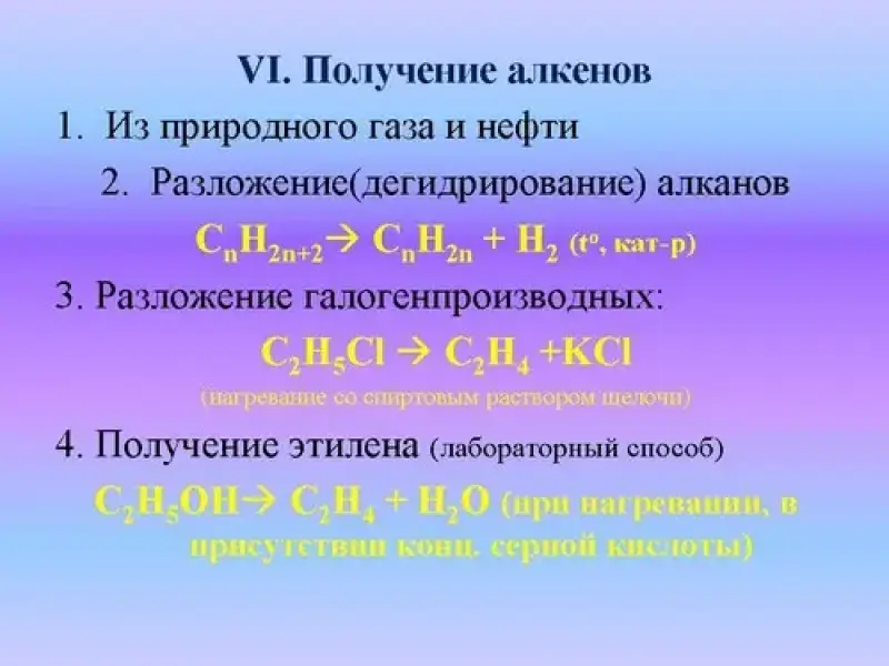 4) изучить химические и физические свойства алкенов, основные способы их получения