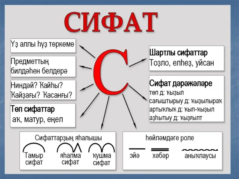 төп сиф., тамыр сиф., артыҡлыҡ дәр.,