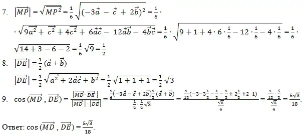 Итак, в данной статье мы рассмотрели применение векторной алгебры для решения стереометрических задач повышенной сложности.