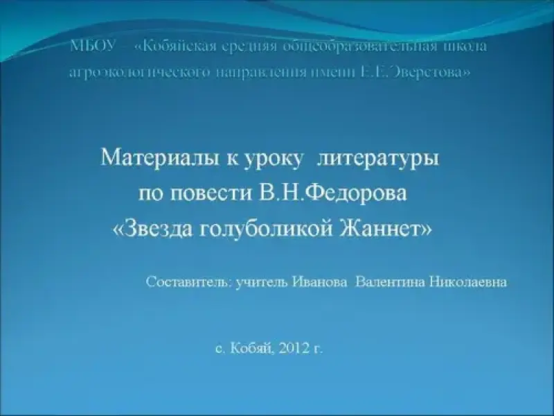 Человек и природа в творчестве В.Н. Федорова (на примере работы с повестью "Звезда голуболикой Жаннет")