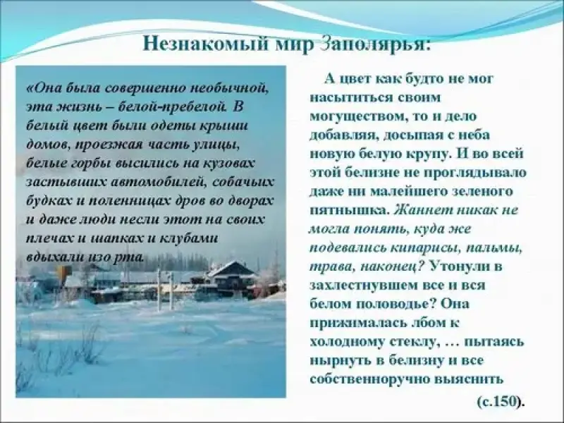 6. Как автор показывает изменение образа жизни Жаннет в Заполярье?