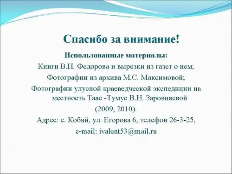 I. Вступительное слово учителя о Владимире Николаевиче Федорове (показ слайдов)