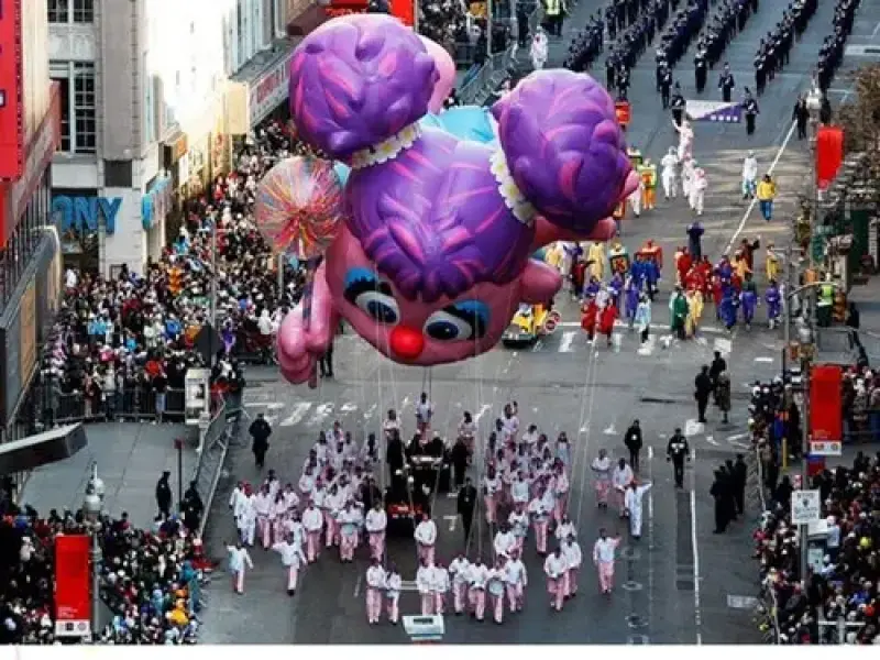 P 4: [СЛАЙД 9] Every Thanksgiving Macy's department store organizes a parade in New York City and other cities of the USA. In the parade there are balloons of popular cartoon characters, famous television stars, and bands from all over the United States. [СЛАЙД 10] Watching college football games on television is also a typical Thanksgiving Day activity