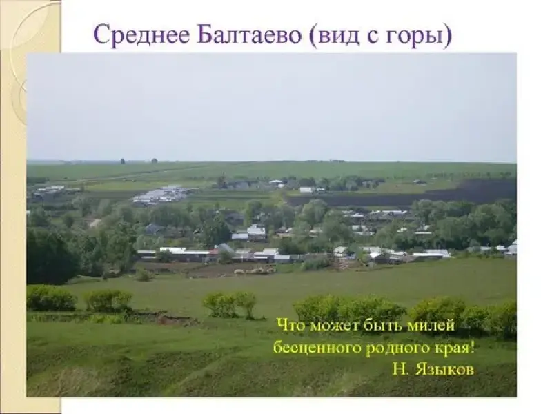 Наше село Среднее Балтаево расположено в прекрасном уголке природы, у подножья большого холма Пэси. По середине деревни течет река Черемшан.