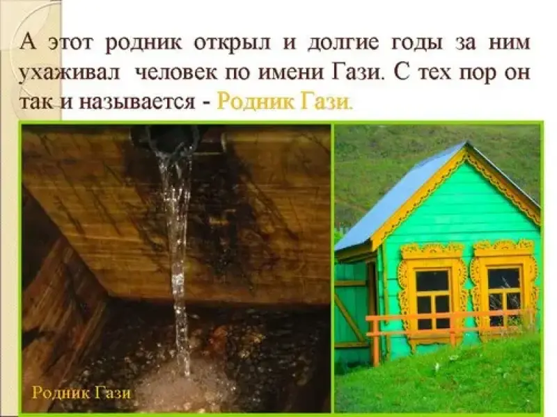 У нас очень красивые родники, cреди них как «Пэси кизләве", "Сәйфулла кизләве", "Ташлы елга", "Кыр кизләве"и другие.