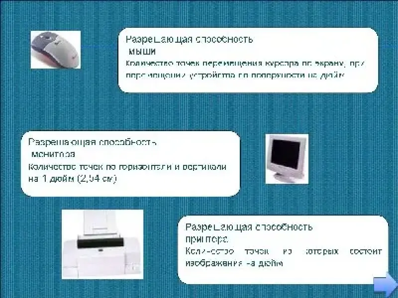 Разрешающая способность координатных устройств- это количество точек на которое переместиться курсор при перемещении координатного устройства на 1 дюйм. Измеряется в dpi - точек на дюйм. В современных устройствах разрешающая способность устройства может достигать 2000 dpi.