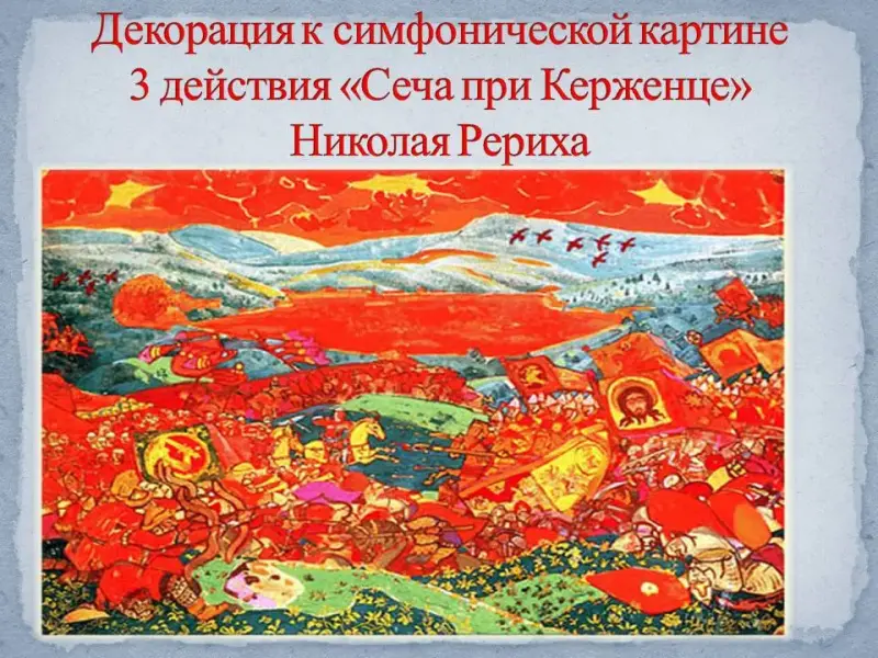 Слайд 4. В начале 20 века Николай Константинович Рерих создаст декорацию к этой сцене. Она будет знаменита. Давайте и мы познакомимся с ней.