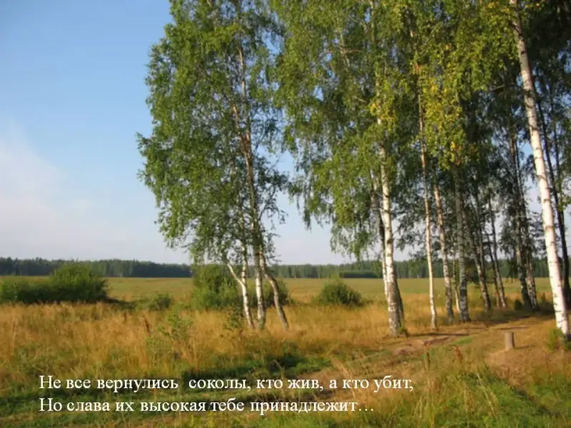 У: Слайд 7. Да, много осталось лежать в чистом поле защитников земли русской. Давайте вспомним и споем один из куплетов знакомой нам песни. (Исполнение песни