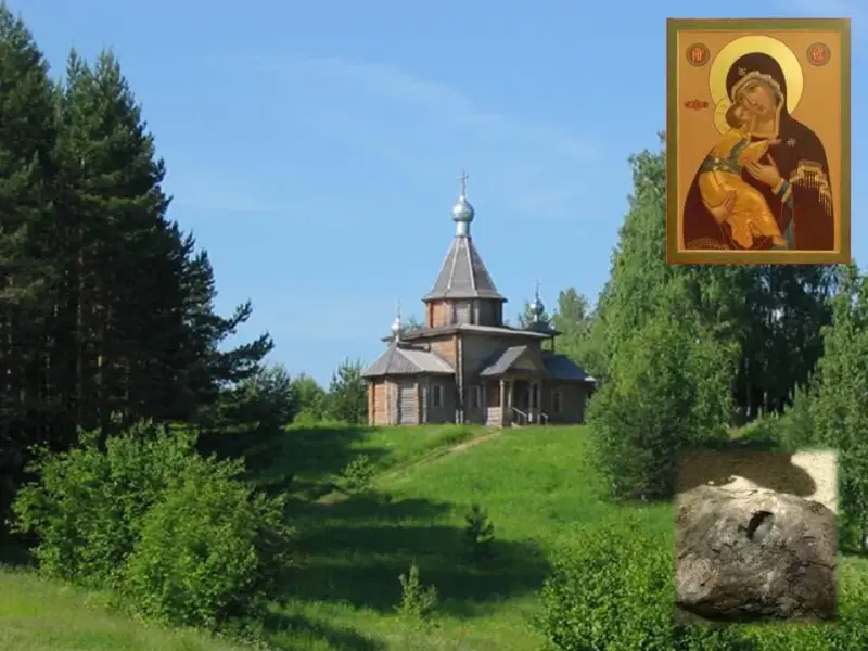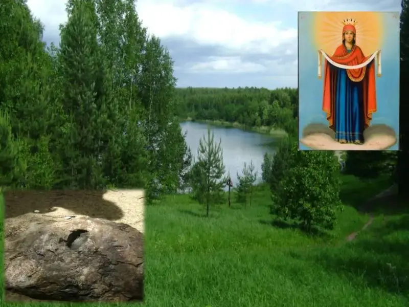 У: Что это за камень? Кто знает? Это следовик с отпечатанным следом Богородицы. Жители Китежа стали просить у Господа и Богородицы защиты и ее получили. Не сдался татарам Китеж,