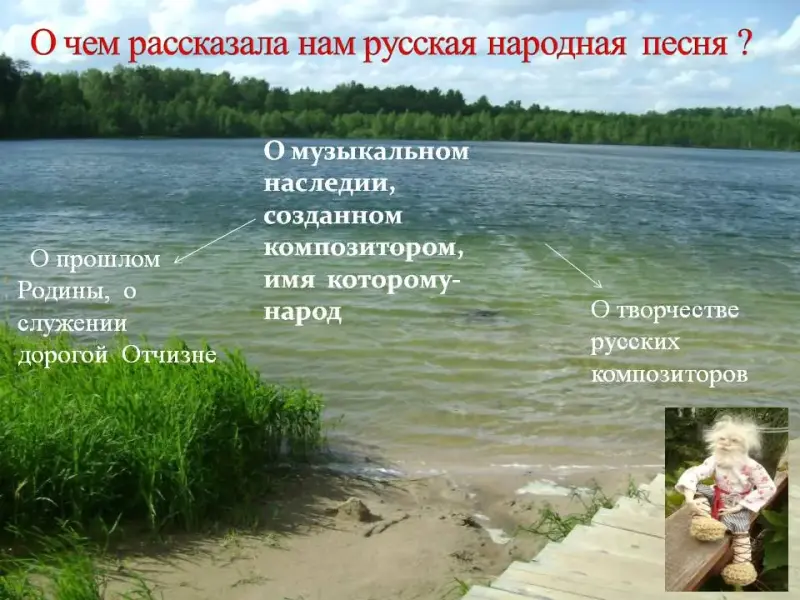У: Слайд 2.Для того, чтобы определить жанр новой песни, давайте обратимся к содержанию песни. (Учитель поет, ученики знакомятся с содержанием песни, уточняют с