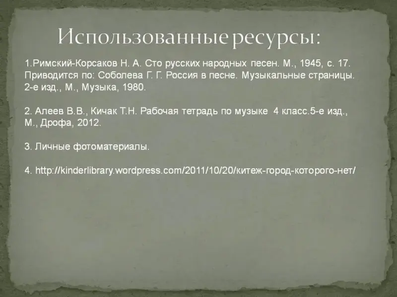 Урок начинается с фоновой музыки. Звучит вступление «Похвала пустыни» к опере Н.А.Римского-Корсакова «Сказание о невидимом граде Китеже и деве Февронии» (муз. фрагмент №1)