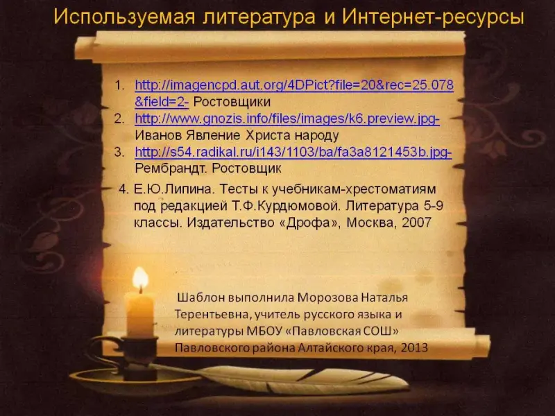 - Литература. 8 класс: Поурочные планы (по программе А.Г.Кутузова) / Сост. Л.М.Серёгина - Волгоград: Учитель, 2003.